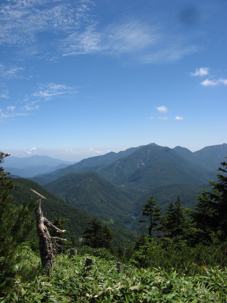 Mt. Konze seems to be popular and I ran into several hikers, especially on the far side. There is a fair view near (at?) the peak, but I didn't stay long; I thought the peak was higher up and kept going! But soon the trail headed down again, and I guessed at the reason for Konze's popularity after taking a look at my map: there is a pass where you can park your car and hike up to the peak in about an hour and a half. If I were to do such a thing, though, I would take the slightly longer trail to the next mountain I climbed: Yusengatake. The view from Yusengatake was much more enjoyable, I thought, and it was something like 270 degrees compared to Konze's 180.