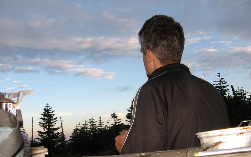 After that I took a nap, then woke and fought flies while I made dinner. Instead of buying dehydrated, processed meals with barely any nutrition, I've been carrying bags with the ingredients for favorite dishes and making meals from scratch in the woods. I bring ramen, too, just in case I'm too tired to bother, but I've done fairly well making mabodofu with freeze-dried tofu and mushrooms with quinoa (which cooks faster than rice). This time, though, I managed to knock the mushrooms and ginger I cut onto the ground at my feet, and so ended up missing out on a few of the finer touches. I stole some ginger from the next day's meal, so I was only missing mushrooms, and so was able to make something presentable. I went to sleep early, hoping I would have enough energy for what the next day, which looked to be a thirteen hour day.