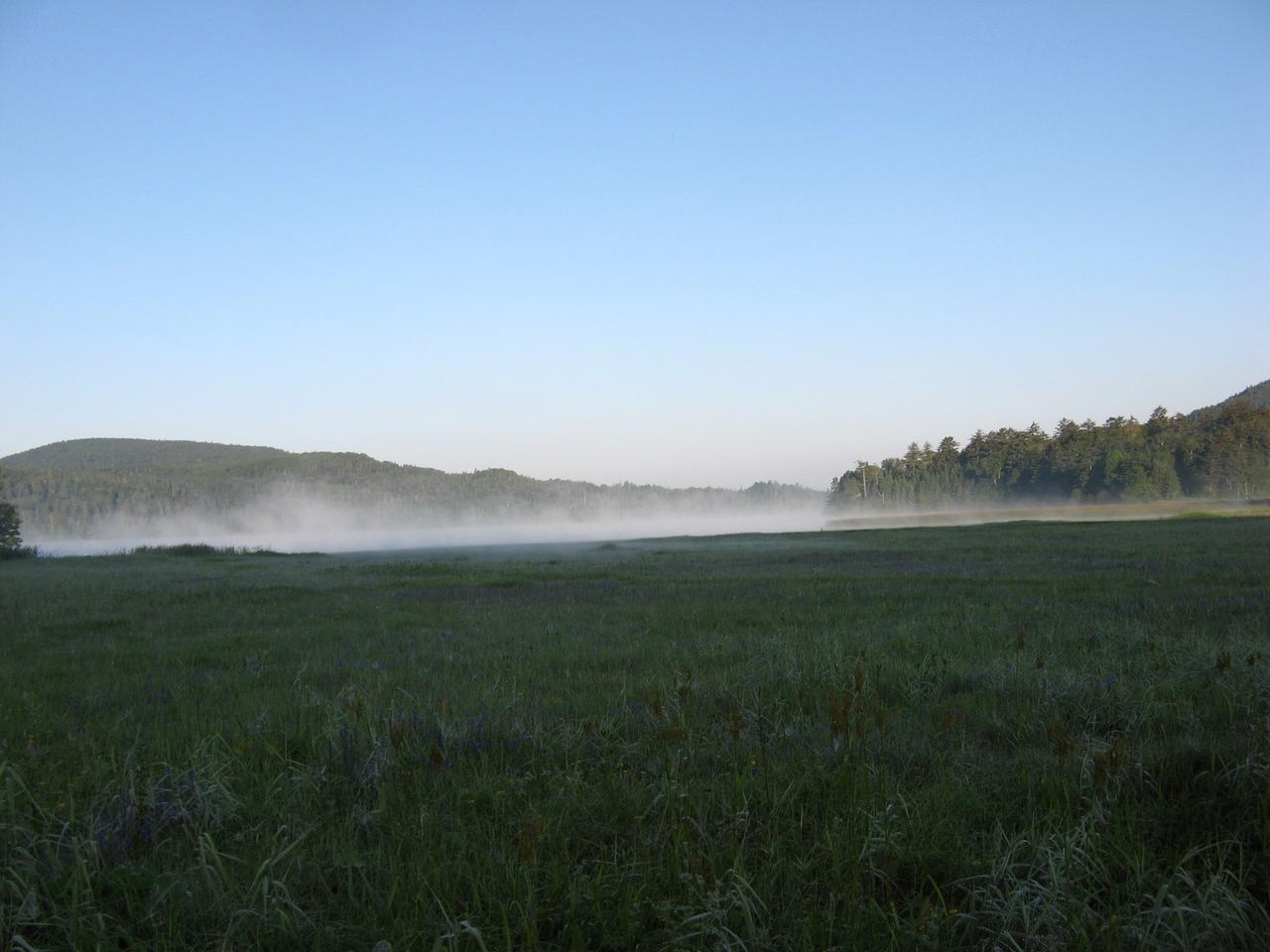 I woke before the dawn, but that was hidden by the mountains anyway; I did take in the view of the misty marshlands before the sun rose, though. It was relaxing and peaceful, a respite after two days of constant travel. I filled up water bottles and was ready to go about 6 am.