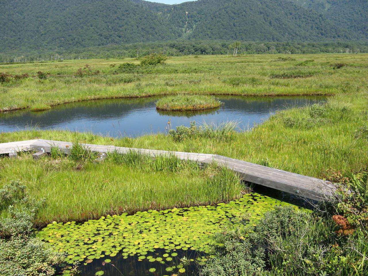 Oze is big, big, big. Not as big as Yellowstone, but big for Japan. The time I was there the expanse was almost entirely green, with few of the flowers Oze and all meadows are famous for. There were two flowers blooming at the time: a yellow and a purple (sorry, not very knowledgeable about flowers), and the water lilies in the many pools decorating the area were just beginning to send up their flowers, though none had yet bloomed.