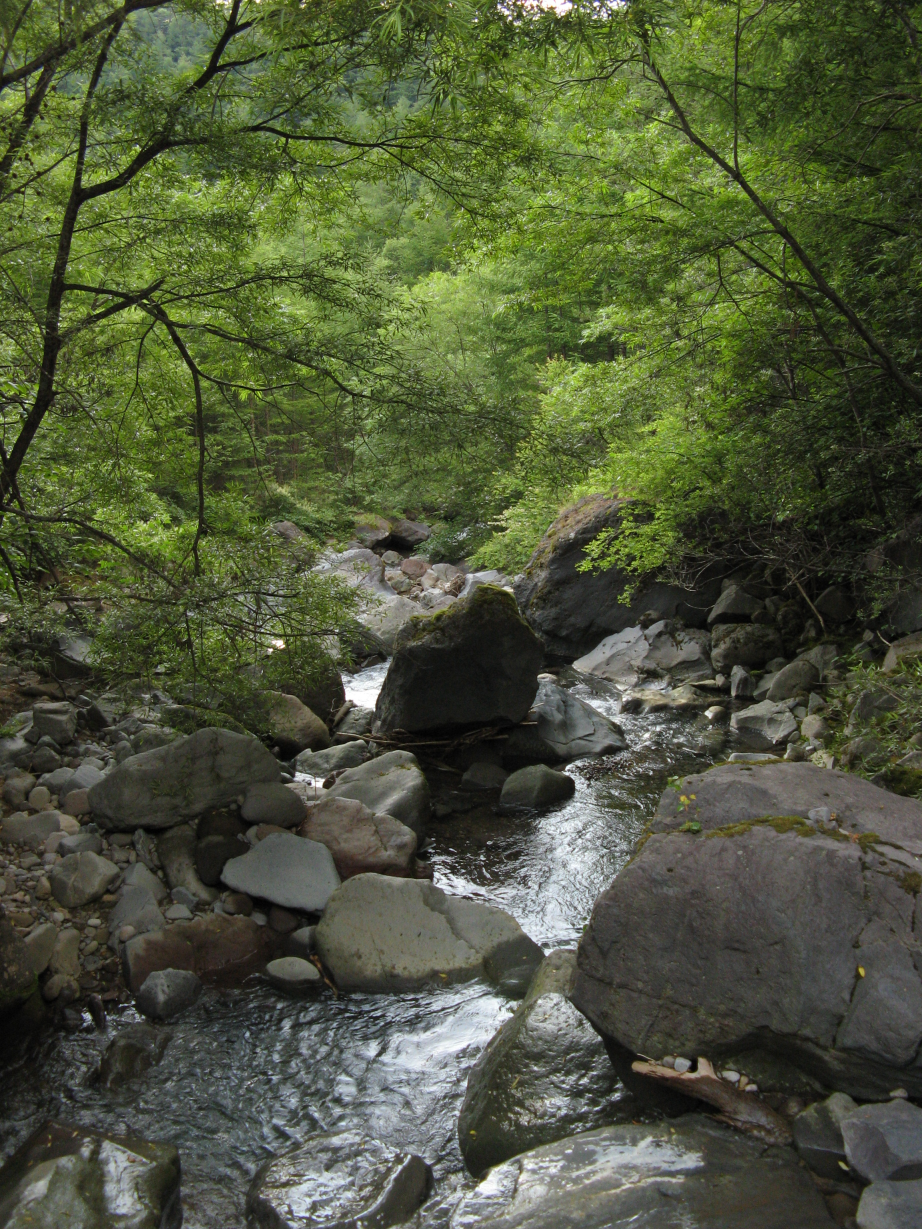 Today worked out very well. I took a route I hadn't planned on, it ended up far better than I imagined. I'm writing now from a site adjoining a yama goya or "mountain hut", though "hut" is inappropriate for some of the elaborate halls that line the tops of mountains in Japan. A stream is rushing by very near the site, and I have a perfect rock to sit on where I can write and watch the flow.