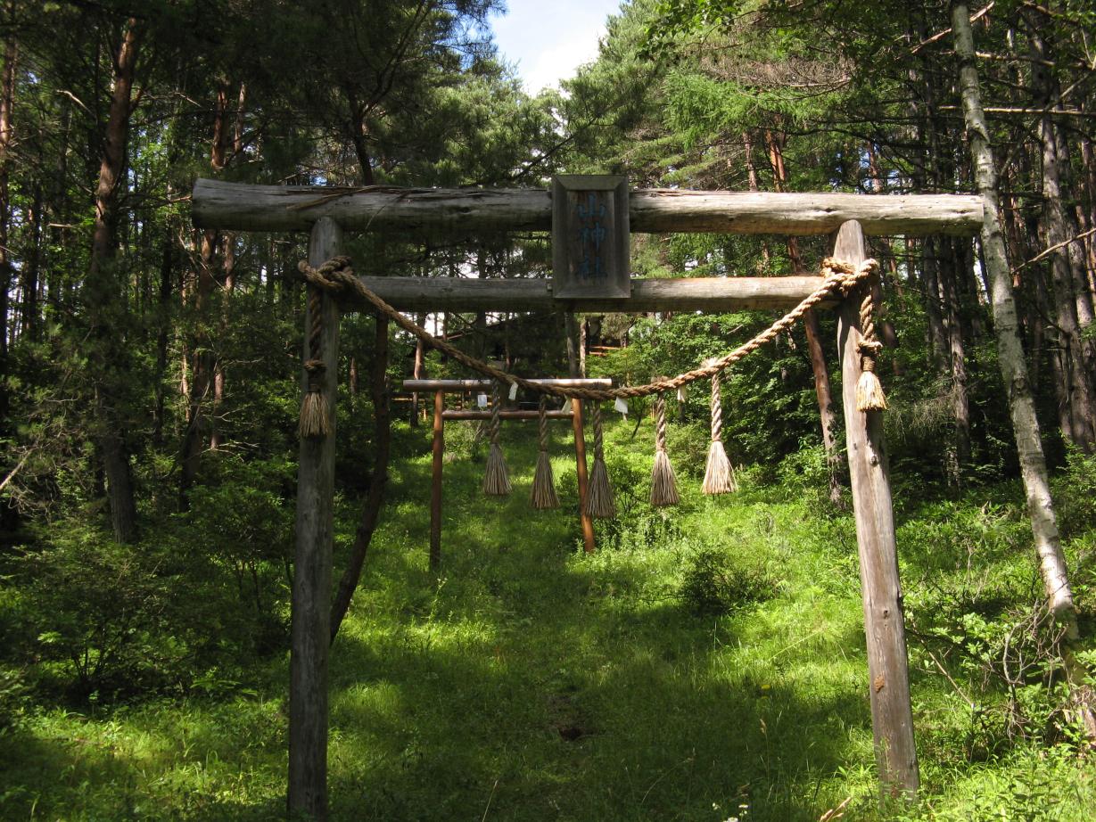 I pushed on after walking the bike for a while, until I hit a turnoff for Kannon Daira. The name interested me (some may know the Chinese name of Kannon, Kuan Yin, better), so I stopped to check my map to see if I should push on or go up that way. I soon discovered that the plans I'd made just didn't make sense--I'm not sure why, but I had focused on the east side of Yatsugatake, never considering the west side. But since the other places on my itinerary were on the west side, I would need to go in an unnecessary loop up north and back west, since there are only hiking passes in the main part of the mountain chain. I didn't like this when I was planning, and I even considered carrying my bike up the mountain if that were possible. It somehow never occurred to me to just take the western road when it forked north of Kobuchizawa.