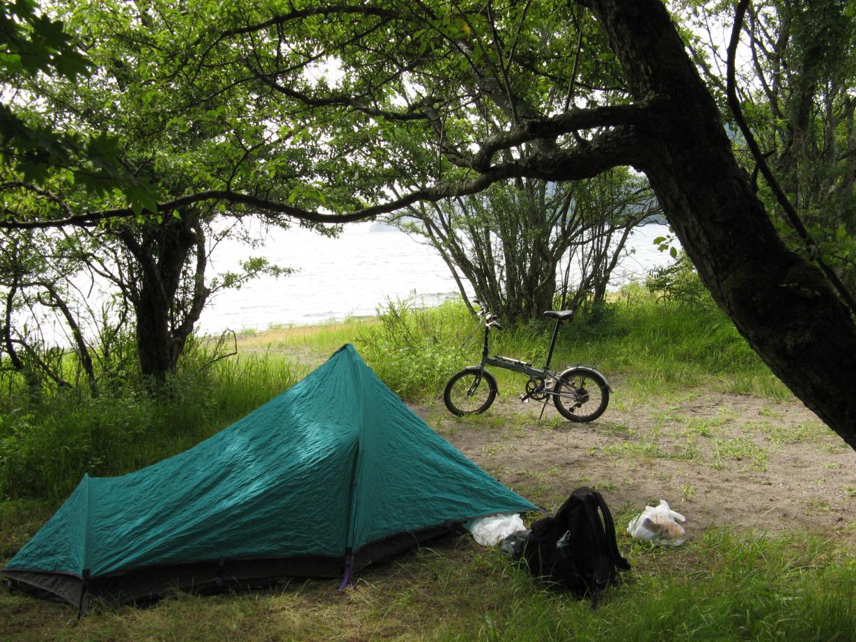 The camp site was indeed quite empty, and I selected a spot far back from the front gate, about 10 feet from Lake Chuzenji. I put up my tent, then headed for the town to pick up dinner if I could. I was happy to find a small grocery store just about to close. The owners were friendly, and I visited a couple of more times during my stay there. After a fifteen minute ride back to the camp and a meal, I was off to bed.