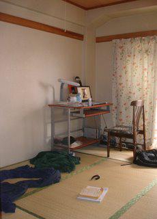My room. You can see that, at the moment, I have no bed. When I noticed this, I was worried I had misunderstood and would have to buy my own futon, but there was a mix-up, and I should be getting a new mattress today or tomorrow.
