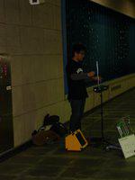 At the station I found this guy, playing Christmas tunes on a Theremin (is "Somewhere Over the Rainbow" a Christmas tune? Well, anyway, he also played "White Christmas," and his sign says something about Kurisumasu). If you don't know what a Theremin is, it is an electric instrument that uses hand movements to create Star Trek-style eerie, spacey sounds. This guy was pretty good, though he missed a few notes.