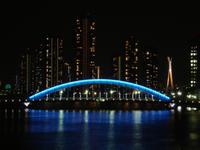 First ( that I saw, there are actually many more to the north of this bridge) is the Kiyohashi, fairly boring looking other than its lights illuminating it in purple.