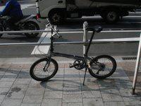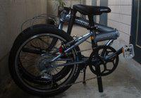 Yes, it's a folding bike. For a long time I really looked down upon the things: very often they have those tiny 20" wheels, and I just thought they were toys. But there are some very serious bikes made this size, and one bike craftsman, Alex Moulton, builds his bikes with the belief that the smaller size is superior to the regular bike configuration we see on Tour de France and most other races. In any case, it makes the most sense for me: I can take it in a suitcase when I go back to the US, and I can easily carry it on trains here and easily increase my touring range.