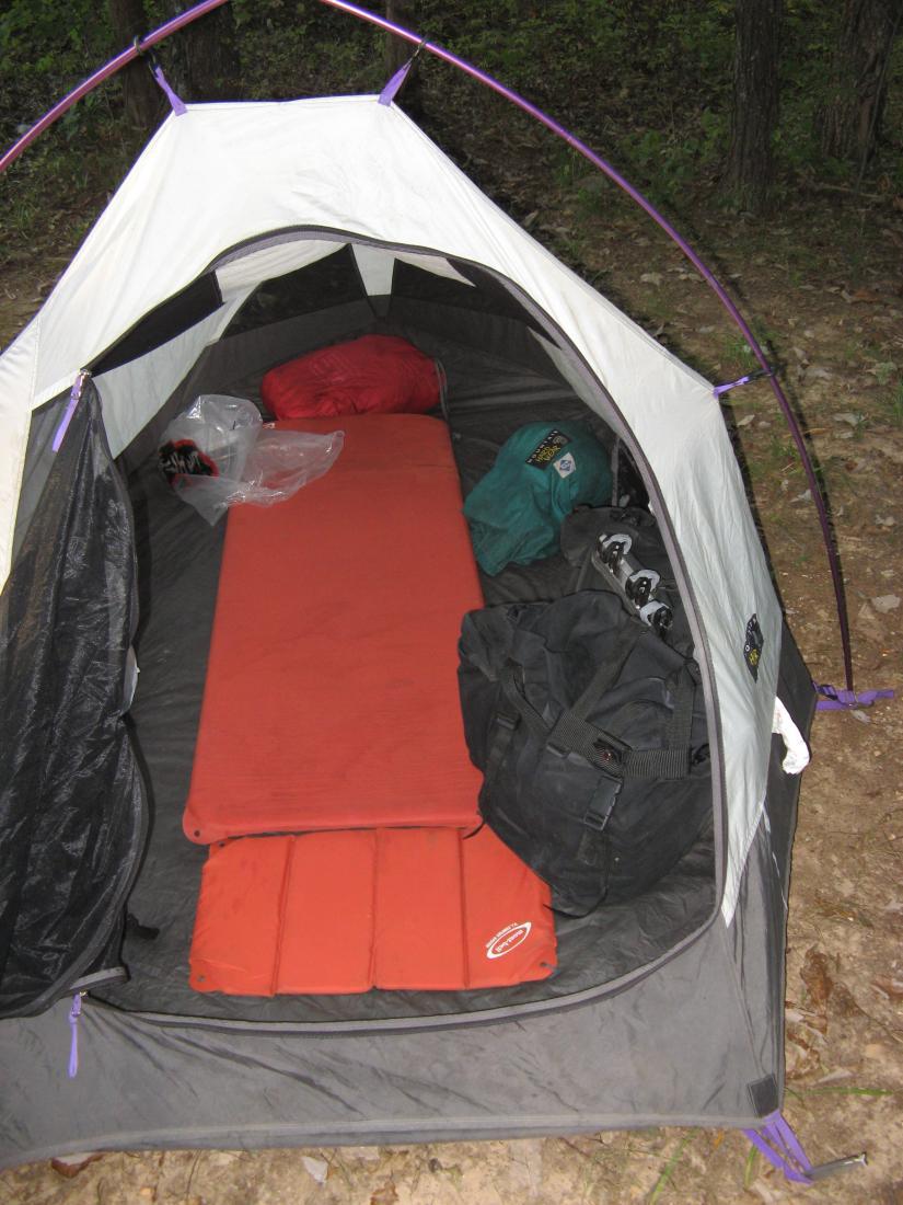 Fortunately, my down sleeping bag wasn't wet and my mat sheds water, so I knew I could sleep once I'd toweled out the bottom of the tent. In fact, nothing except a few brochures from state parks was really damaged, so I'd escaped relatively uninjured.